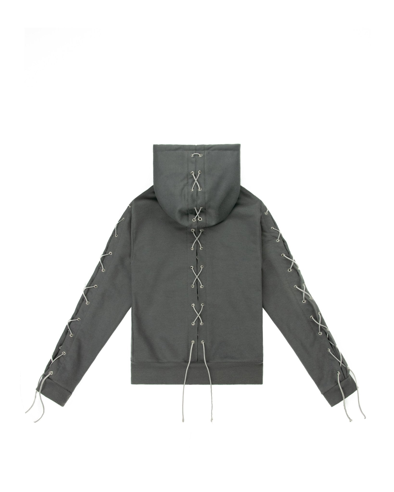- FULLY FUNCTIONAL LACE-UP DESIGN ON HOOD, BACK, AND ARMS